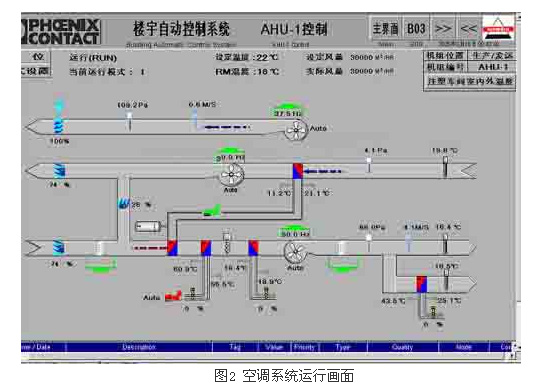 整个楼宇自动化系统□,空调机组系统为控制部分的重点,以下是PHOENIX厂房楼宇自动化系统的1#空调机组运行画面。