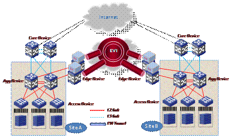 EVI 技术由H3C提出,目前正处在申请标准化的过程中。Cisco类似的私有技术是OTV。