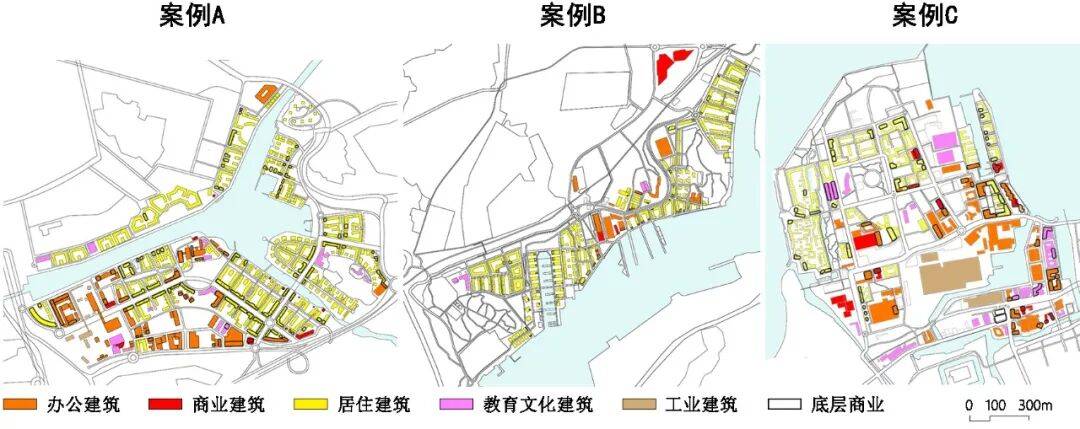其中,案例A通过滨水步道与桥梁串联沿岸的广场和公园▽-,在南岸地区沿电车线路建设步行活力街道,并与外围绿地贯通-▷●,形成水绿交融的街区开放空间网络。案例B的北侧是城市公共绿廊,采用垂直向的绿地公园、广场或林荫路等方式将之与南侧的滨水区联通,构筑水绿平行且相互渗透的公共空间体系▪▼◁。案例C是三面被水包围的半岛,通过南北向的林荫大道连接滨水区和南侧的大型城市绿地,另外还有多条景观步廊纵横交错,将生活区与老城区、中心公园、大学岛=•▼、中央车站及码头区联为一体,并加强与滨水区的连接…•,使水景观为整个城区共享。