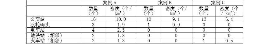 3个案例都充分利用自身的地理区位及场地特点,提供多元化的公共交通方式和便捷可达的站点服务来支持住区的绿色出行(图3=▪■,表2)。
