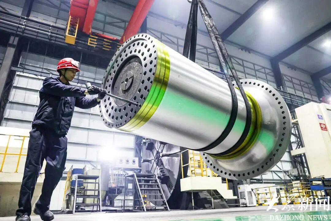12月16日,山东金雷新能源重装有限公司工作人员正在对轴承座进行检查作业。