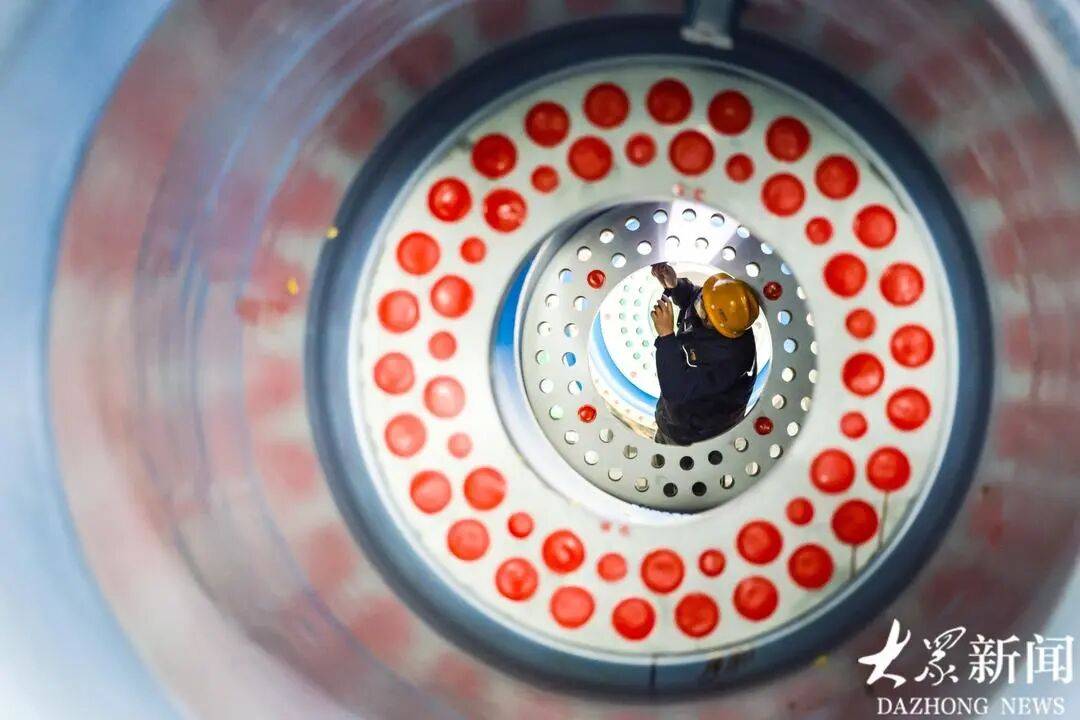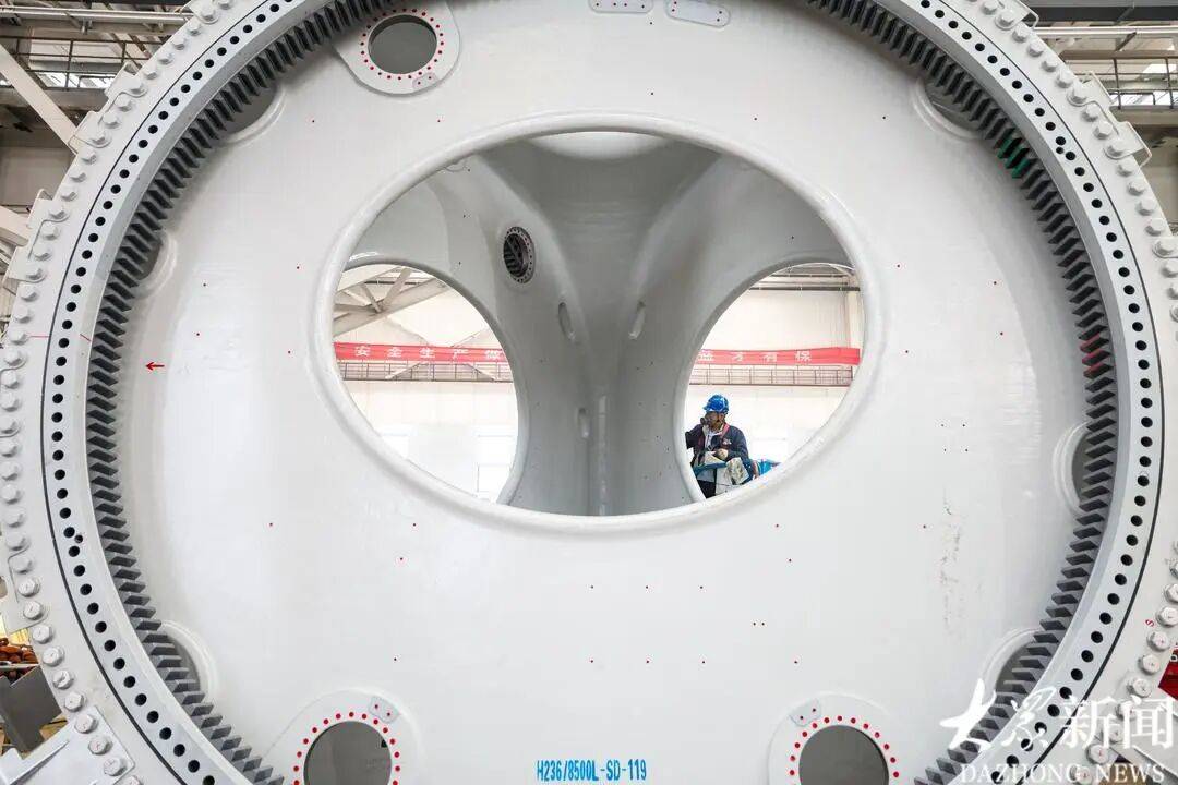 12月16日▽●=,中船海装风电(山东)有限公司车间内…▷,工作人员对轮毂进行喷漆。“十五五-=▽”大幕将启,风电开发正加速向水深30至60米▲…、离岸距离30至130千米的深远海挺进。深远海不仅是资源宝库,更是技术的=“试金石”◆。中船科技攻克全球最大功率构网型技术、150米级超长叶片高稳定设计、机电传动系统高密度集成等核心技术▪,为破解深远海风电开发难题▽■、推动产业提质增效提供了最优方案。在年平均风速 10米/秒的条件下-•,25兆瓦机组理论年上网电量超1亿千瓦时□••,相当于每年节约标准煤4万吨●★,减少二氧化碳排放9.97万吨;机组在额定功率下运行时,每转动一圈大约可发69-▷◁.4度电▼▷,可满足8个3口之家1天的用电需求。