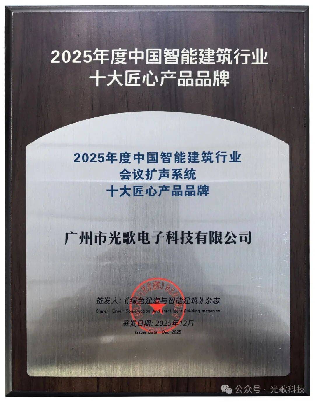 GRUGL(光歌)荣获“2025年度中国智能建筑行业会议扩声系统十大匠心产品品牌◆▼”大奖!