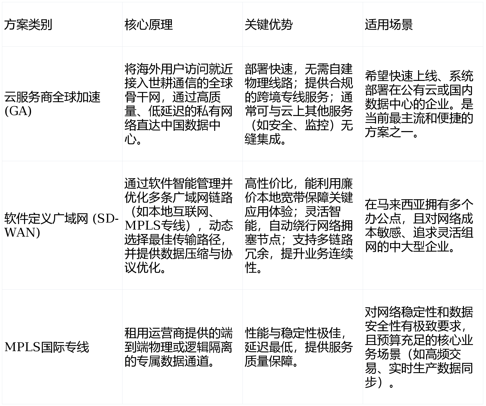 这是提升体验最直接●、最根本的一环,旨在为数据铺设一条跨国“高速路”。主流技术方案对比如下: