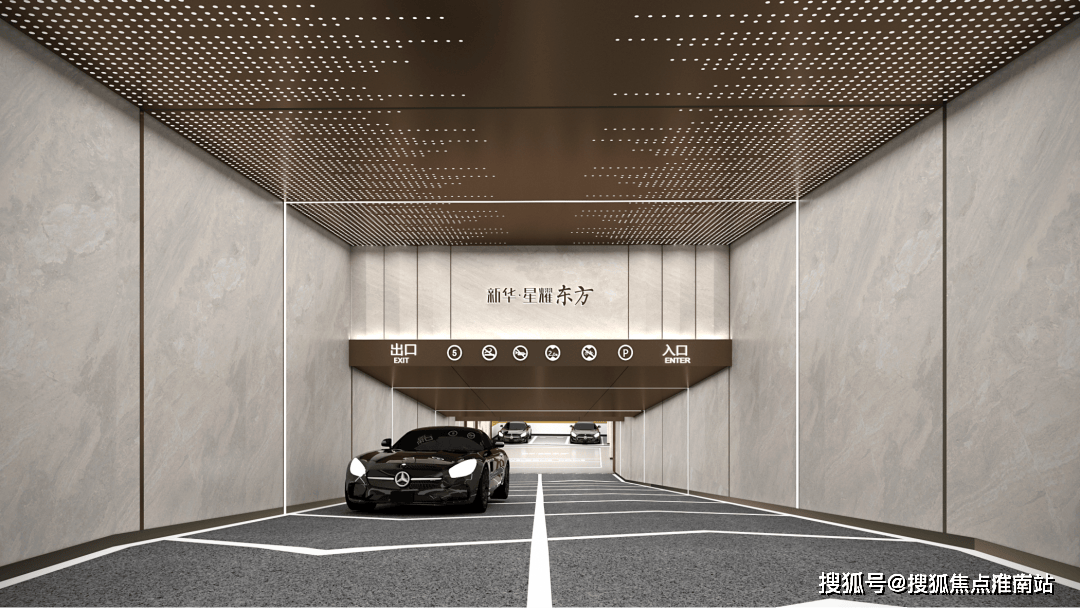 入口对行人、机动车进行优化分流,保障业主安全;而地面停车位,方便参观者、业主等临时停车的需求。另外在车库上•○,项目还打破了常规地库的单调、晦暗。直接将豪车专属的星空顶搬入了地库里。从车行驶入地库的那一刻开始■,一场名为“宏大”的归家之旅就开始了。通道入口,顶部优雅的星空放射灯,展现出浩瀚星空般的深邃、璀璨◆▷▽,搭配两侧的高级铺面材质◇★,尽显奢华气质。