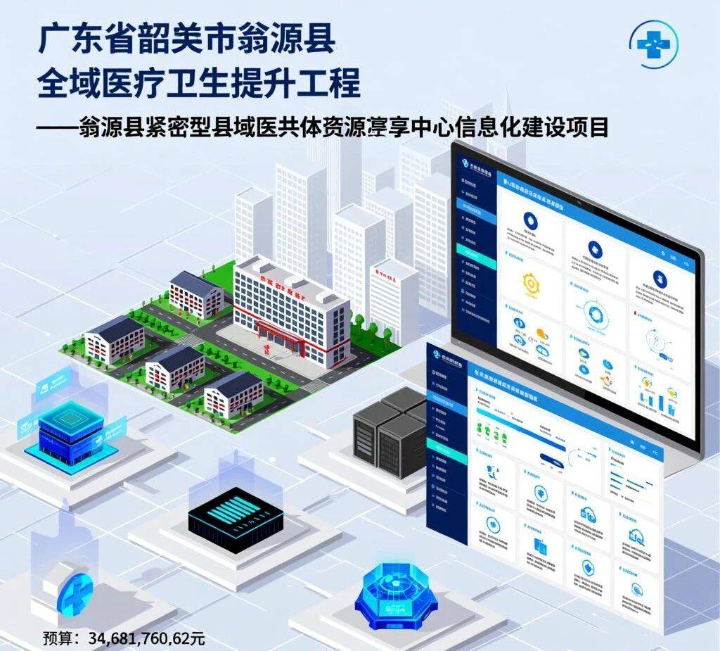 翁源县卫健局预算3468万元,公开招标紧密型县域医共体资源共享中心信息化项目。项目覆盖全县超190家医疗机构,旨在通过一体化平台、数据中心及网络建设,实现区域医疗信息互联互通与业务协同,提升县域医疗服务能力。