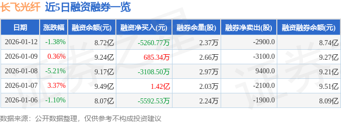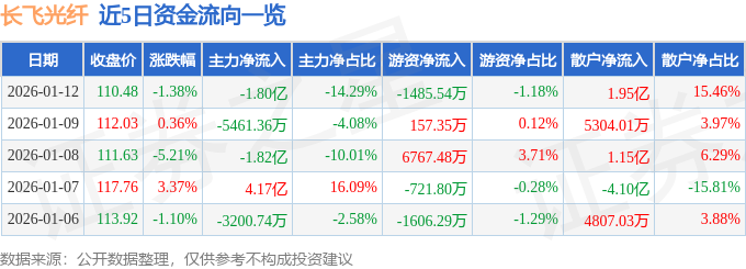 证券之星消息,截至2026年1月12日收盘,长飞光纤(601869)报收于110…….48元,下跌1○▲☆.38%,换手率2.83%,成交量11.49万手,成交额12.62亿元。